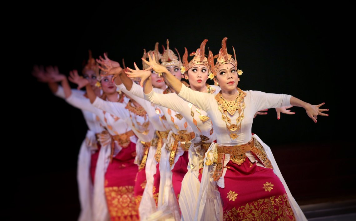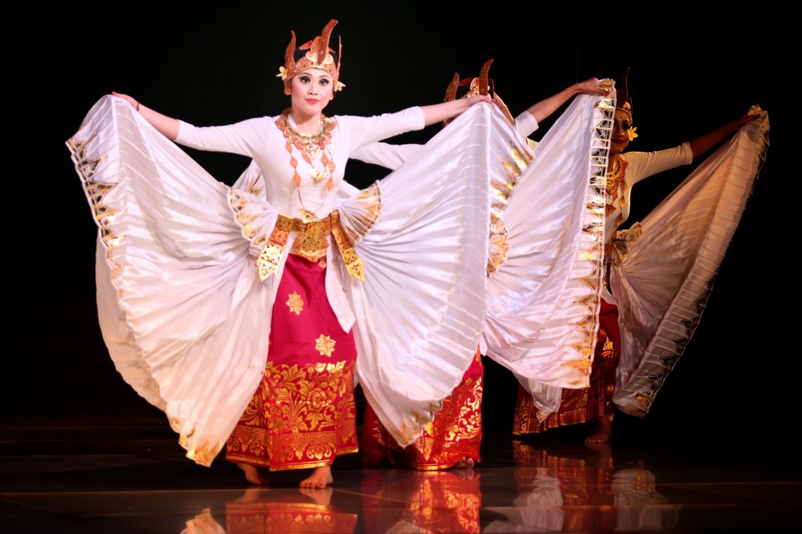 A beautiful and qualified artwork, born from a total devotion of the artists. It is seen in one of the artistic creations of Balinese dance called Belibis Dance. The movement and behavior of Belibis or whistling duck has inspired the artists to create new dance creations. Belibis dance is so beautiful, artistic, attractive and harmonious with Balinese gamelan accompaniment. (Text from bigbogbali.com)